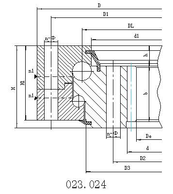 雙排球式回轉(zhuǎn)支承具有三個座圈,鋼 球和隔離塊可直接排入上下滾道,根據(jù)受力狀況,安排了上下兩排直徑不同的鋼球。這種開式裝配非常方便,上下圓弧滾道的承載角都為90°,能承受很大的軸向 力和傾翻力矩。當(dāng)徑向力大于0.1倍的軸向力時滾道須特殊設(shè)計。雙排球式回轉(zhuǎn)支承的軸向、徑向尺寸都比較大,結(jié)構(gòu)緊固。特別適用于要求中等以上直徑的塔式 起重機,汽車起重機等裝卸機械上。