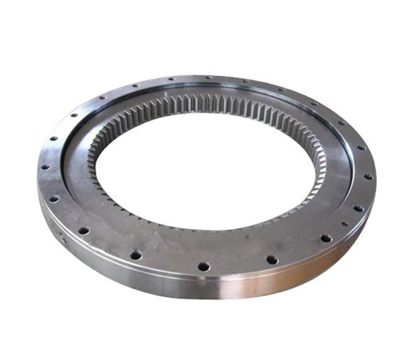 單排四點接觸球式回轉(zhuǎn)支承由兩個座圈組成,結構緊湊、重量輕、鋼球與圓弧滾道四點接觸,能同時承受軸向力、徑向力和傾翻力矩。回轉(zhuǎn)式輸送機、焊接操作機、中小型起重機和挖掘機等工程機械均可選用。